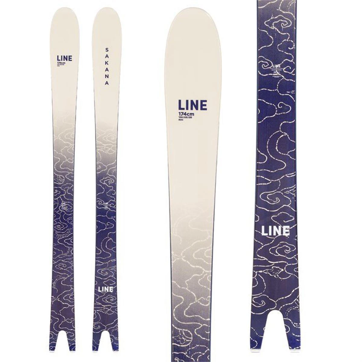 Award-winning and head-turning, the LINE Sakana is a versatile all-mountain ski like no other. Utilizing a unique swallowtail shape and camber through the majority of the ski, the Sakana can rail turns on hard snow, while an early rise tip, back-mounted stance, and wide shovel allow the skis to surf through deeper snow. A ski that floats on fresh and carves better than your Dad on Thanksgiving dinner, experience the game-changing Sakana.
